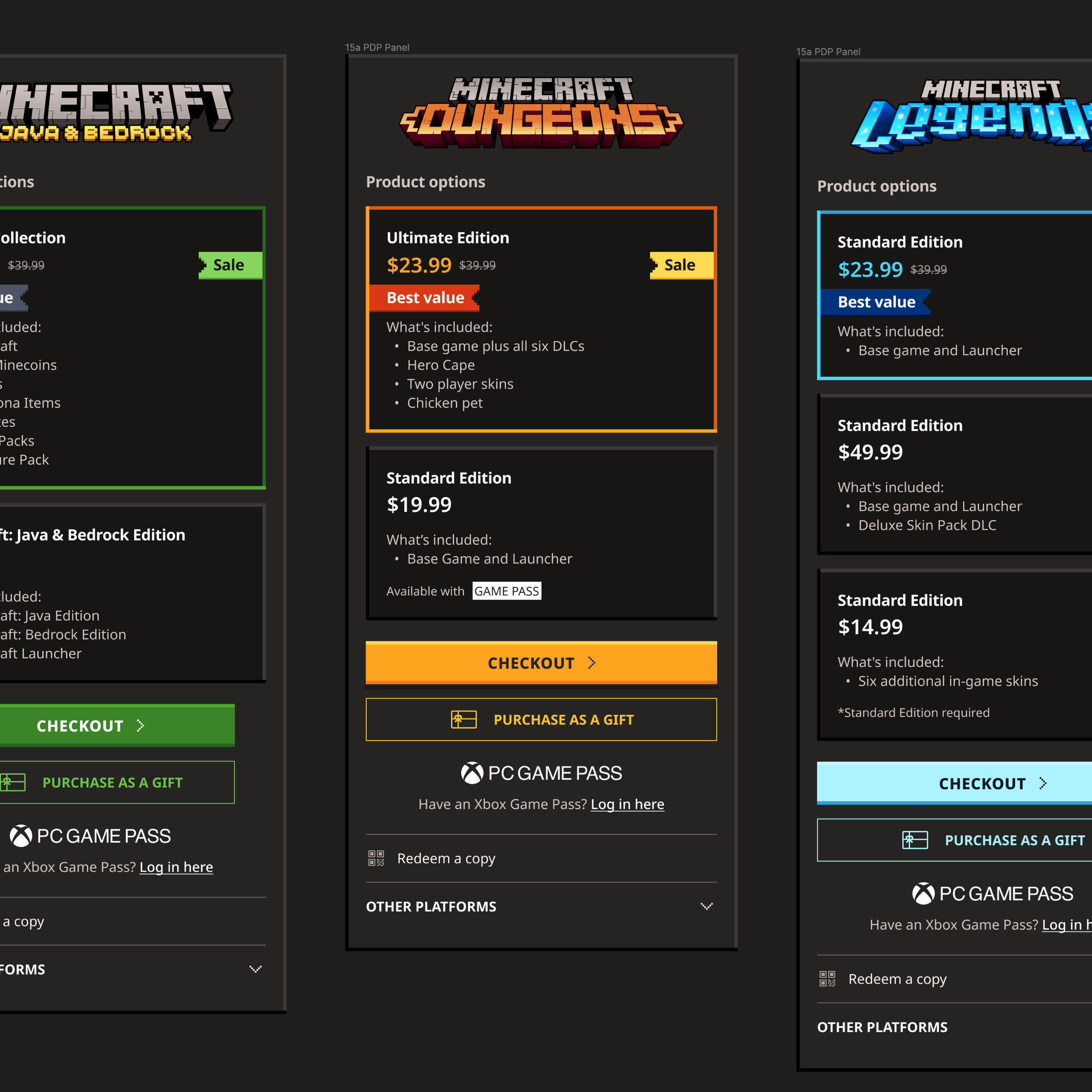 Crafting new features for Minecraft's website has been a thrilling adventure, and I'm particularly proud of two standout additions. The first is the creation of a detailed Product Display Page (PDP) tailored for purchasing Minecoin. This involved a meticulous blend of user-friendly interfaces and persuasive design elements, ensuring a seamless and enjoyable process for players looking to enhance their Minecraft experience.