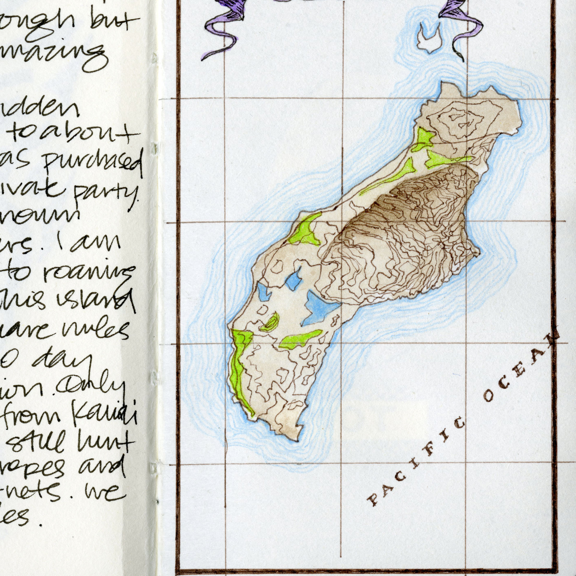 As seen below, each artist contributed to a journal over the months. In my case, I was continuing an epic adventure through a little-known Hawaiian island to find a treasure.