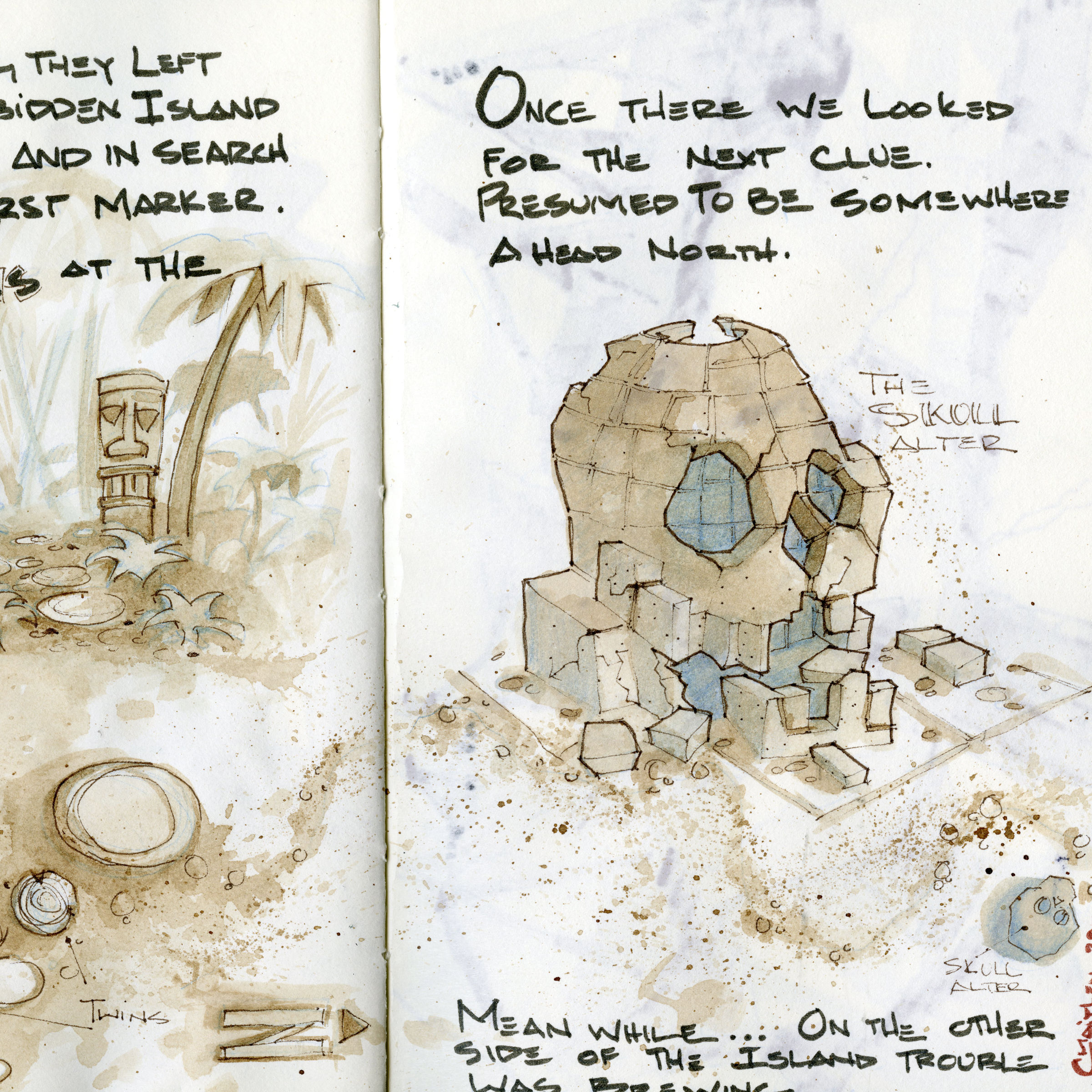 As seen below, each artist contributed to a journal over the months. In my case, I was continuing an epic adventure through a little-known Hawaiian island to find a treasure.