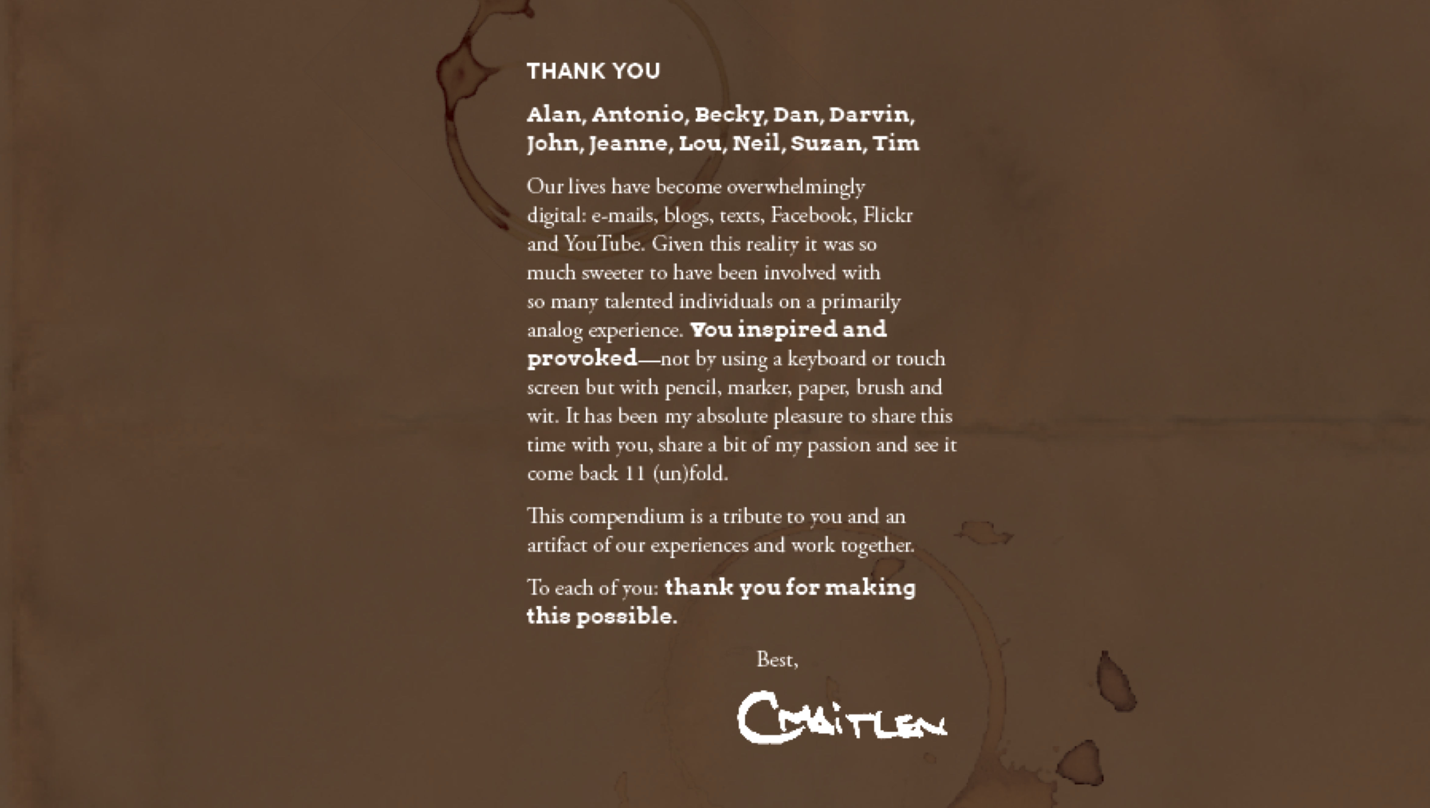 In 2014, we were able to finalize the layout and content of the book. As of January 2015, we published the book online, and for those involved, we could efficiently distribute a finished product to commemorate the journey.