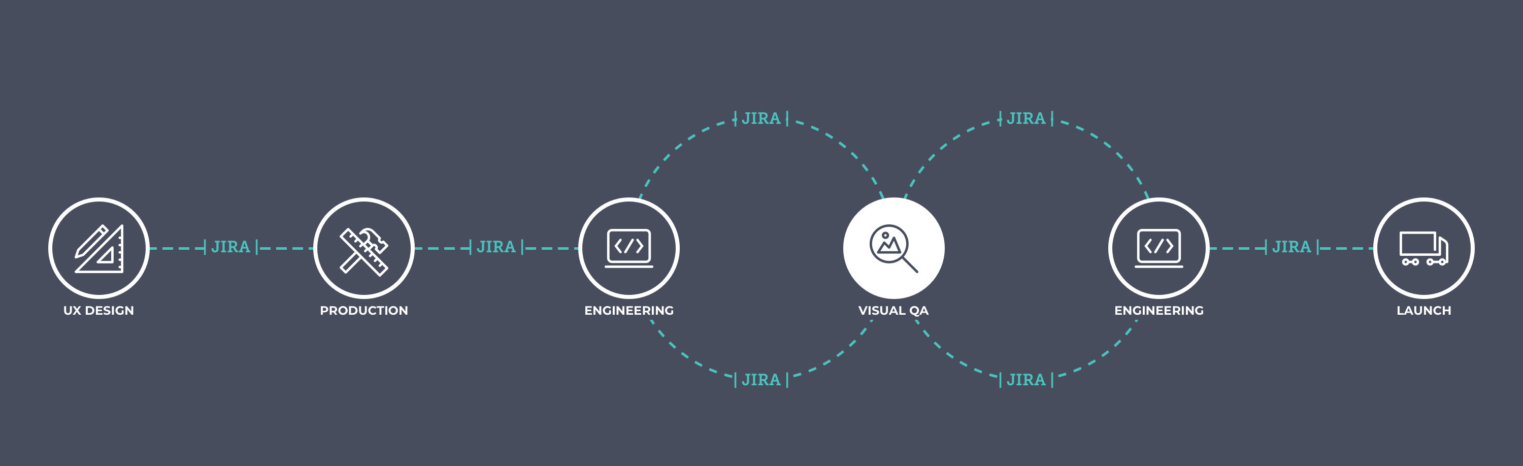 We reference Visual Design Specifications (POR) created by our Production Design team and compare those specs with on-device screenshots from referenced builds. We report any visual defect as a bug to Engineering via JIRA. After bugs are filed, we work with Engineering to verify the implemented fixes.